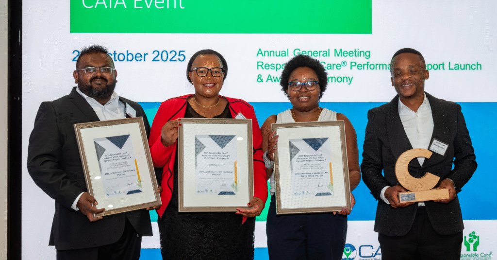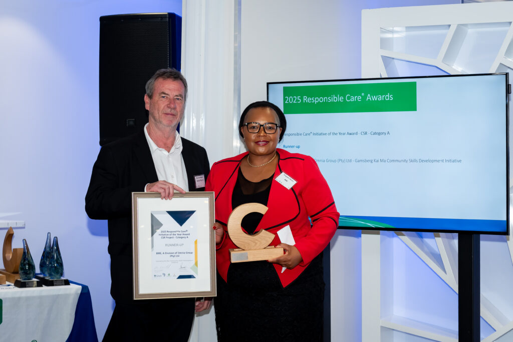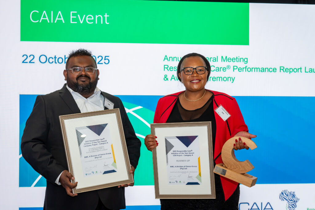 Omnia Holdings company BME’s strong commitment to social development, a fundamental part of its operational excellence, led to the company being recognised as a runner–up at this year’s annual Chemical and Allied Industries Association (CAIA) Responsible Care awards.