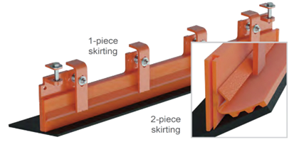 Extending along the length of the skirtboard, this skirting’s unique design provides multiple “pieces” of reliable containment for material fines. A primary strip is shaped to match the trough angle, creating a tight seal. The optional self-adjusting secondary outer flap covers slight variations in the belt’s profile, trapping air and dust.