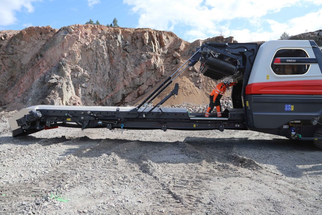 Marais highlights how the improvements in design impact both operation and maintenance, reflecting Metso’s broader design philosophy of integrating real-world operational feedback into equipment development. He points to the redesigned extended discharge conveyor as an example. “The discharge conveyor can operate at three different angles,” he explains. “You can raise it to build a higher stockpile, lower it to feed directly into the next unit in the crushing circuit or drop it horizontally to the ground for maintenance access.” This last function is particularly significant as it allows technicians easier access to the underside of the jaw crusher – an area that often becomes difficult to inspect or service on conventional machines. “Liner changes have also been simplified,” he notes. “The LT400J incorporates dedicated lifting tools and improved access around the fixed jaw end, making the removal and replacement of wear liners safer and more efficient.”