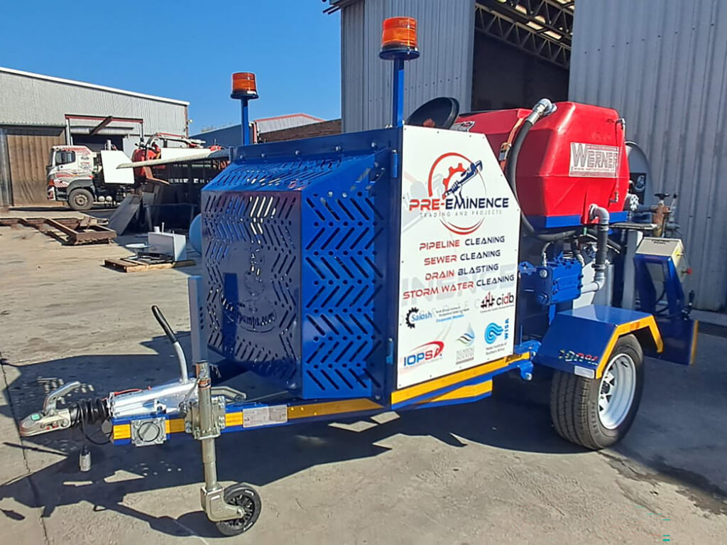 “As our client base expanded, the demand for sewer jetting work increased significantly,” says Palesa Mofokeng, MD of Pre-Eminence. “We already operate a combination jetting and vacuum truck, which we also purchased from Werner Pumps, but it could not always be available for every job. We needed equipment that could close that operational gap without compromising on performance.” The 4-cylinder jetting trailer was selected to provide high-performance jetting capability independent of the combination unit, allowing Pre-Eminence to respond more flexibly to client callouts and manage multiple projects simultaneously.
