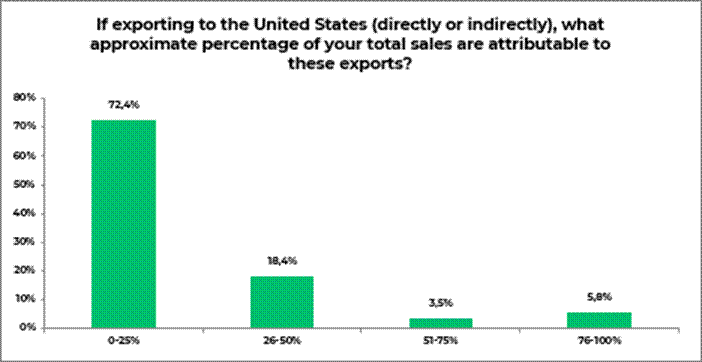 126 member companies responded to the survey, the self-reported exposure to the new United States tariffs can be categorised as follows:
